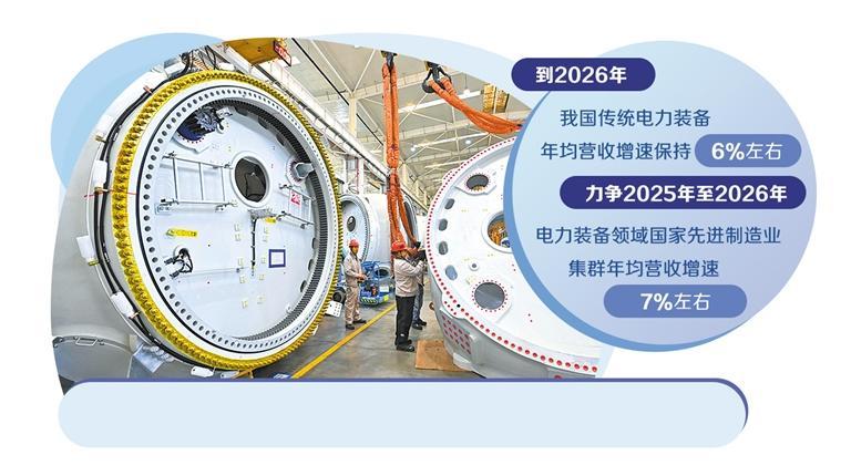 近期,工业和信息化部、市场监管总局、国家能源局联合印发《电力装备行业稳增长工作方案(2025—2026年)》(以下简称《方案》),提出到2026年,我国传统电力装备年均营收增速保持6%左右,新能源装备营收稳中有升。力争2025年至2026年,电力装备领域国家先进制造业集群年均营收增速7%左右,推动一批标志性装备攻关突破和推广应用。