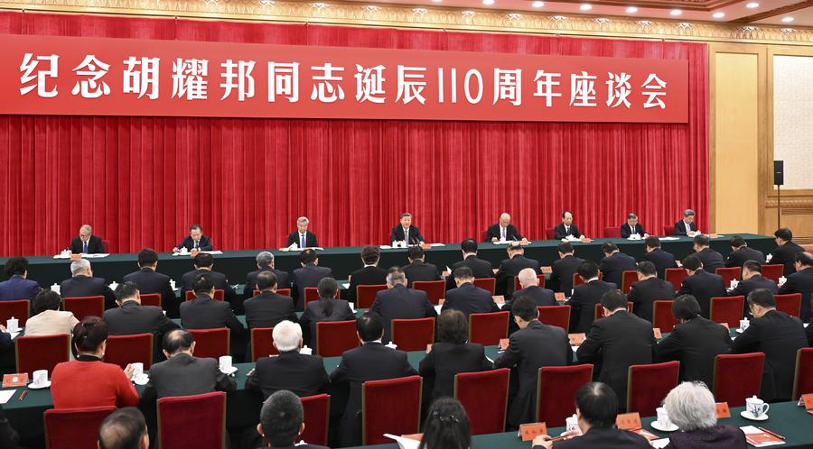 BEIJING, Nov. 20 (Xinhua) -- The Communist Party of China (CPC) Central Committee on Thursday held a symposium to mark the 110th anniversary of the birth of Hu Yaobang, a former prominent leader of the Party, at the Great Hall of the People in Beijing.