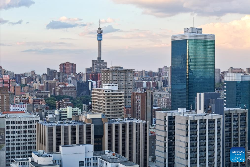 A drone photo taken on Nov. 19, 2025 shows a view of Braamfontein in Johannesburg, South Africa. Johannesburg is South Africa's largest city and economic hub. (Photo by Shiraaz Mohamed/Xinhua)