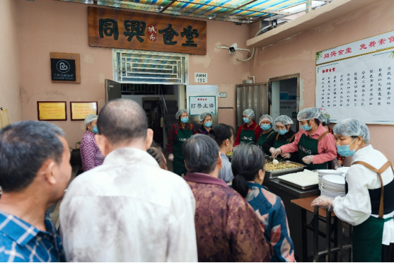 同兴食堂的工作人员能清楚地记住这些熟悉的背影。从接电话协调物资,到一遍遍检查食材、端上最后一碗菜,都是在用自己的方式回答“节约”和“互助”意味着什么。