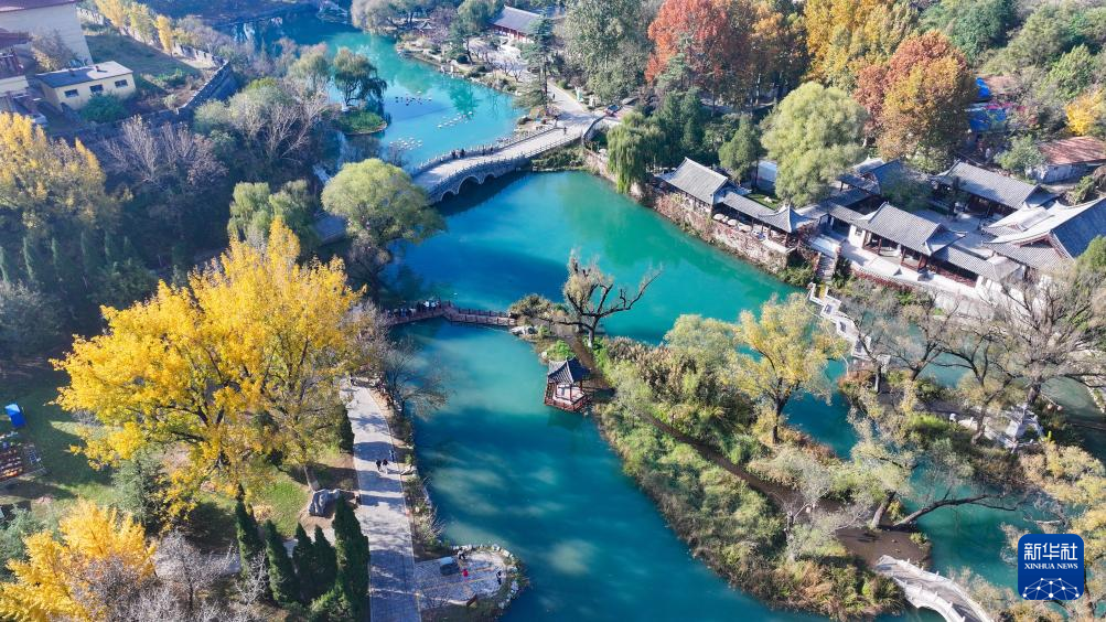 11月5日,游客在山东省青州市南阳河景区赏景游玩(无人机照片)。