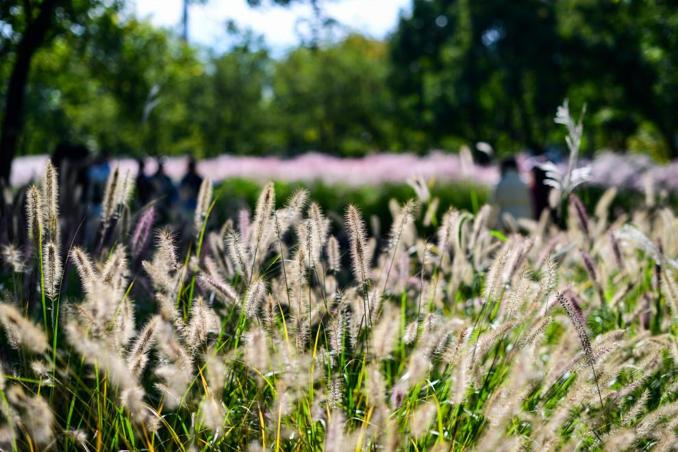近日,位于天津市滨海新区的泰达植物资源库芊卉园的观赏草迎来最佳观赏期,狼尾草、粉黛乱子草等色彩斑斓,摇曳生姿,吸引不少游客游览拍照。