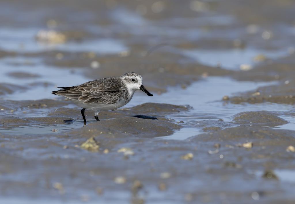 11月9日,一只勺嘴鹬在泉州围头湾滩涂上觅食。