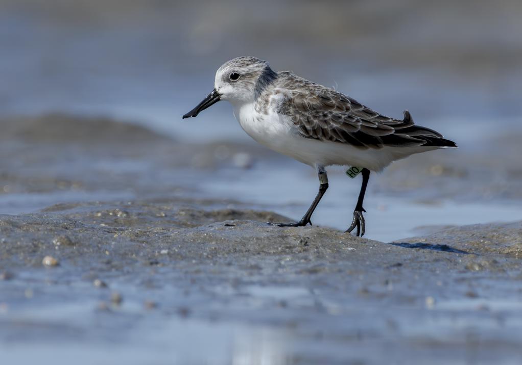 这是连续三年来泉州围头湾越冬的戴“H0”脚环勺嘴鹬(11月9日摄)。