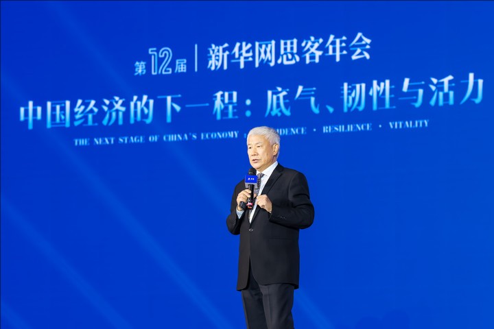中国人民大学国家金融研究院院长、中国资本市场研究院院长吴晓求发表主旨演讲。新华网 发