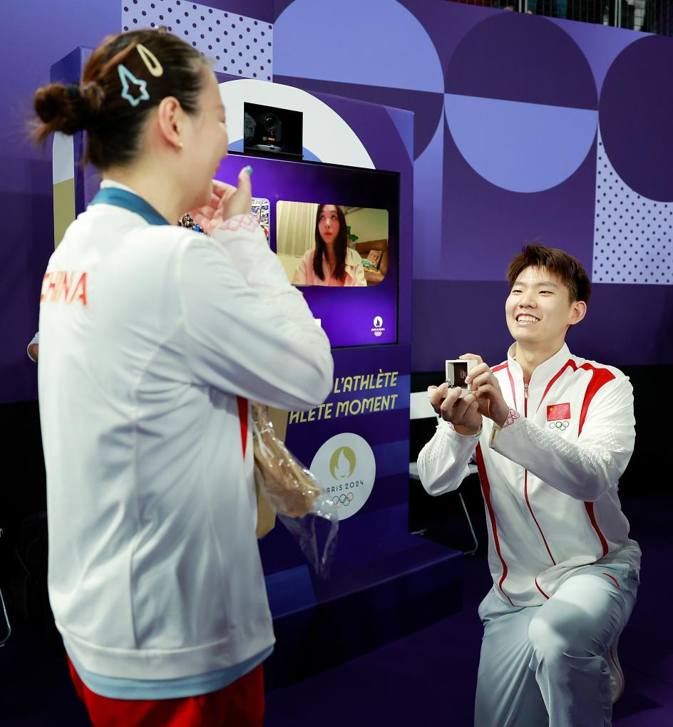 2024年8月2日,刘雨辰(右)向黄雅琼求婚。新华社记者 任正来 摄