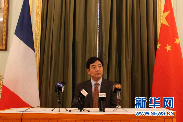 ??? 3月21日,中國駐法國大使翟雋接受駐法中文媒體聯合采訪。中國駐法國大使翟雋日前就習近平主席訪法接受駐法中文媒體聯合采訪時表示,這次訪問是中法建交50周年慶祝活動的高潮,是一次具有歷史意義的訪問,將推動中法全面戰略伙伴關系再上新臺階。新華社記者鄭斌攝