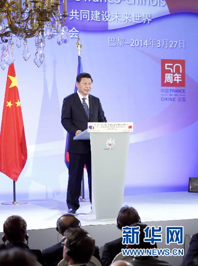 ??? 3月27日,國家主席習近平在巴黎出席中法建交50周年紀念大會并發(fā)表重要講話。 新華社記者 鞠鵬 攝