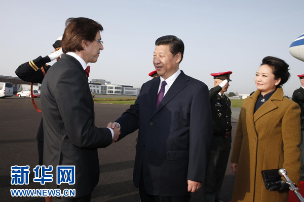 習(xí)近平是在結(jié)束對德國的國事訪問后從杜塞爾多夫抵達布魯塞爾的。離開杜塞爾多夫時,德國北威州州長克拉夫特等德方官員到機場送行。